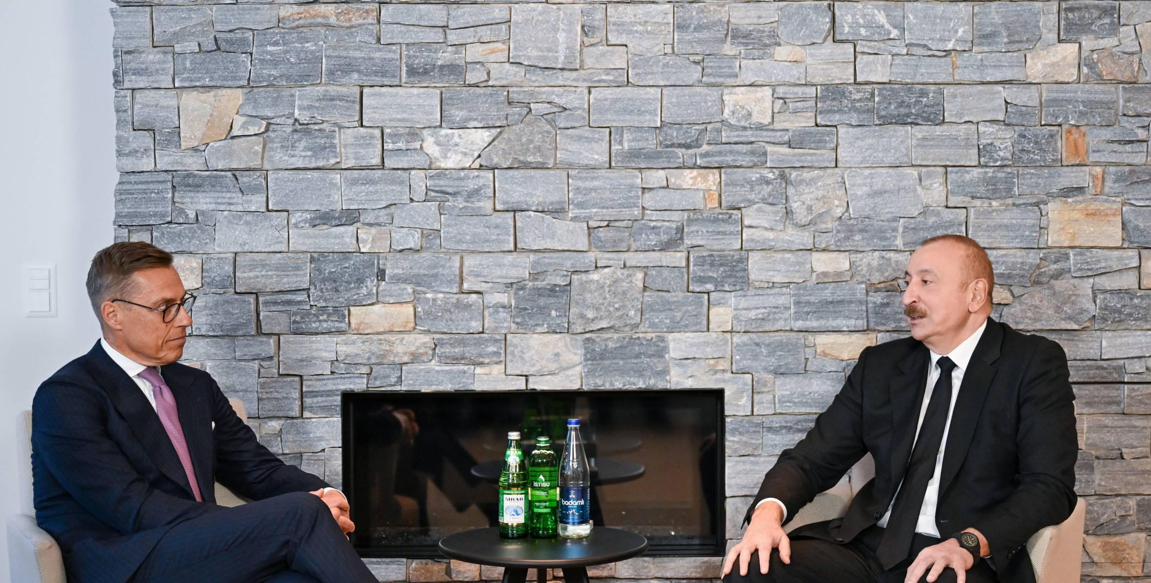 Президент Азербайджана Ильхам Алиев встретился сегодня в Давосе с президентом Финляндии Александром Стуббом.